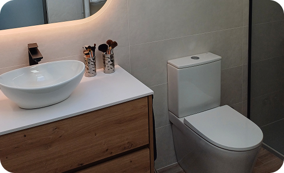 Renovación completa de tu baño, incluyendo demolición, nuevas instalaciones de fontanería y electricidad, alicatado de suelos y paredes, instalación de sanitarios, mamparas, muebles y accesorios. Tú solo tienes que decidir el estilo que deseas.